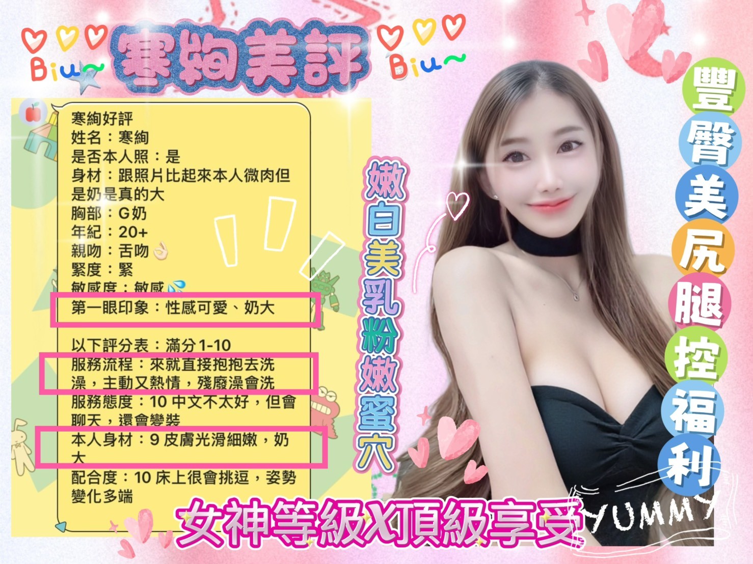 甜蜜共浴/無套吹/69/小親親/品鮑/舔蛋/奶炮/胸推/輕功/按摩/可配合絲襪or變裝(需自備)/可配合角色扮演(需自備)