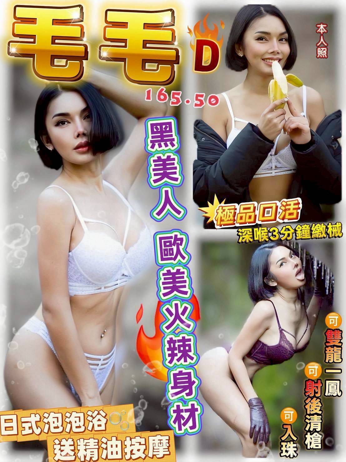 水中蕭/無套吹/戴套做/按摩/屁推/奶炮/舌吻/胸推/品鮑/69/舔蛋